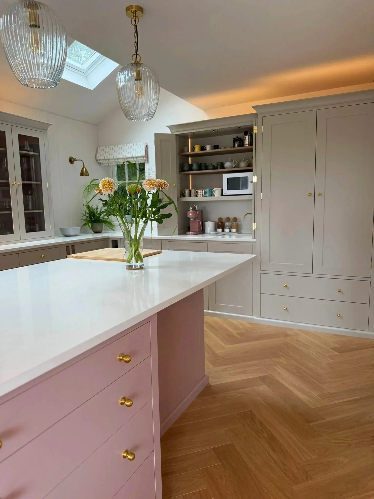 Our bespoke kitchens are endlessly customisable, giving you the freedom to shape every detail around your lifestyle and aesthetic. Choose from beautifully honed stone or warm oiled timber worktops, paired with hardware in finishes from brushed brass to matte black, and select colours from soft neutrals to bold, characterful tones. You can learn more about how we build in our process.
